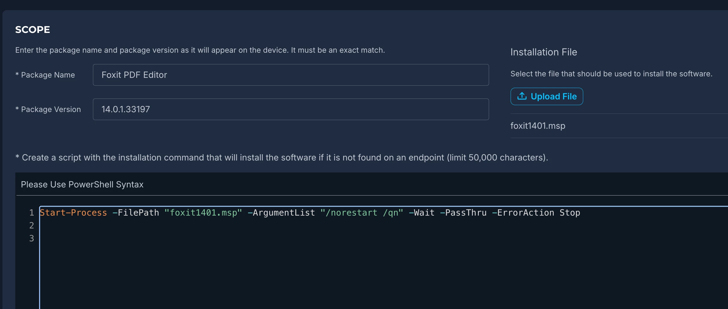 Start-Process -FilePath "foxit1401.msp" -ArgumentList "/norestart /qn" -Wait -PassThru -ErrorAction Stop
